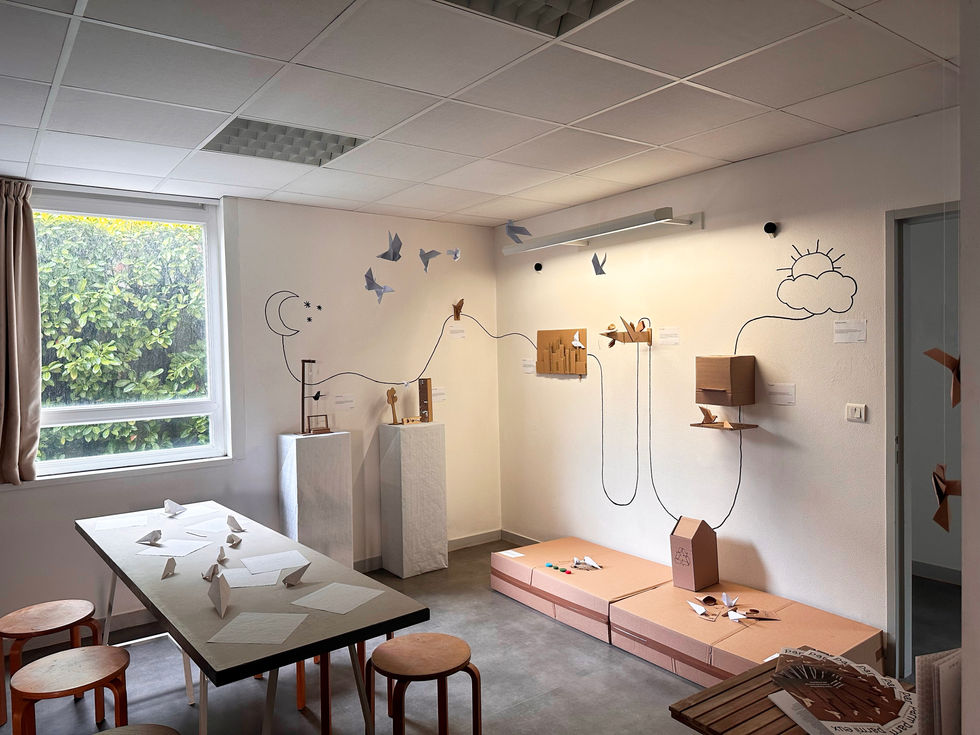 Immergé dans un univers urbain reconstitué en carton et entouré d'oiseaux en origamis qui prédominent cet espace, le visiteur petit et grand peut expérimenter la vie de cet animal sauvage à travers 10 interactions aux caractères poétiques, légers et ludiques.